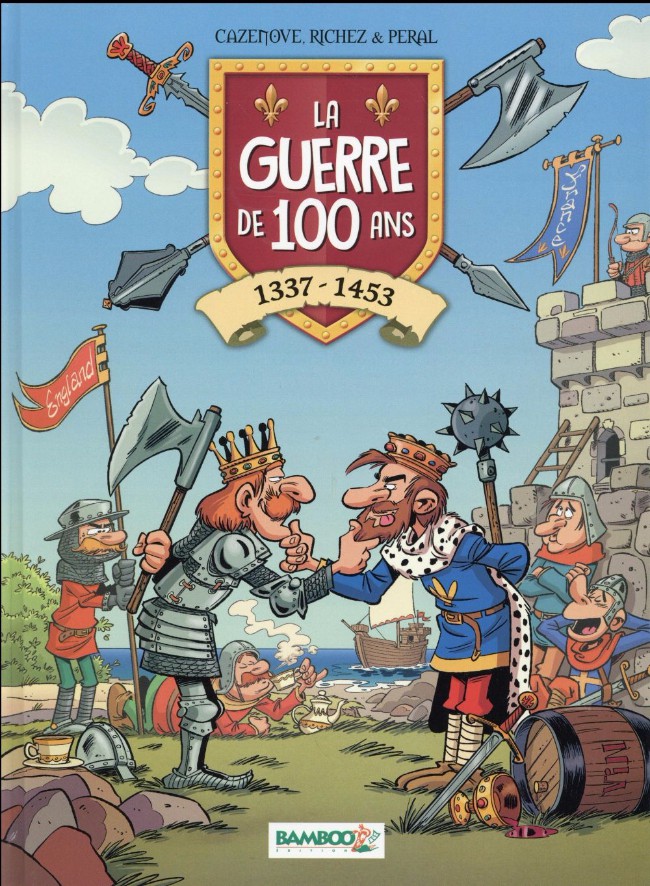 Résumé: La Guerre de Cent Ans est déclarée : boutons la morosité hors du Royaume de France ! Enfilez votre cotte de mailles, abaissez votre heaume : la Guerre de Cent Ans a commencé et vous allez mourir de rire ! Des ruses de Du Guesclin au procès de Jeanne d'Arc, en passant par les ravages de la peste noire, les gags font mouche aussi sûrement que les flèches des archers anglais ! Et si l'humour emporte tout sur son passage, la réalité historique n'est pourtant jamais bien loin. Racontée ainsi, la Guerre de Cent Ans semble soudain beaucoup moins longue et on parie que vous allez en redemander !