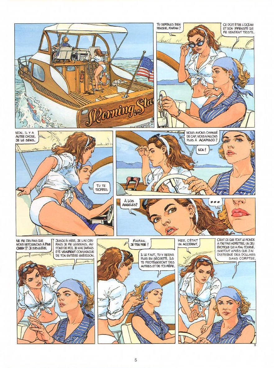 Pas lu l'ensemble de la série, donc pas au courant de l'intrigue principale sur le mystère de l'assassinat de la femme de l'inspecteur héros, j'ai quand même lu avec intérêt cette intrigue policière un peu conventionnelle mais bien racontée, surtout que j'apprécie les dessins bien adaptées qui nous mettent dans l'ambiance des séries télé américaines, avec héroïnes aux gros poumons sans doute gonflées artificiellement et beau policier ténébreux qui sait mettre de côté ses problèmes personnels pour accomplir son devoir, même s'il ne résiste pas totalement à la tentation.
