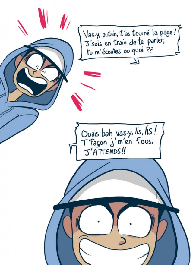Les crocodiles de Thomas Matthieu avait abordé exactement le même sujet à savoir le harcèlement de rue qui touche principalement les femmes. Or, je suis l’œuvre de Yatuu qui a déjà réalisé « Moi, 20 ans, diplômée, motivée... Exploitée ! »ainsi que Génération mal-logée !. Ce titre est sa dernière production. le principe est celui d'une fille qui se fait aborder lourdement dans la rue par un ou plusieurs mâles en chaleur. C'est tout de même à lire car c'est abordé de manière différente et sous l'angle assumé de l'humour. L'auteure semble être une spécialiste pour tourner en dérision certains problèmes de société pourtant difficiles. Les hommes sont traités comme des primates qu'il faut éduquer même si cela parait mission impossible. Elle ne tombe pas dans le stigmatisme car elle a inversé les rôles au cours de deux-trois gags ce qui donne une situation désopilante qui nous fait prendre conscience du phénomène. Par ailleurs, il y a encore des garçons bien mais ils payent pour tous les autres relous. Bref, la manière de lutter de l'auteure, c'est le gag et même s'il paraît agaçant à la longue. J'ai bien aimé le jeu « chercher le non relou » à la manière d'où est Charlie ? J'avoue ne pas avoir trouvé. Heureusement qu'il y a la réponse en fin de BD. J'apprécie toujours également la même fraîcheur du trait même si le décor est plutôt minimaliste. Bon point également pour retranscrire le doux langage des cités et de montrer certains hommes dans toute leur bassesse lamentable. le rappel de la loi en fin de volume paraît dans ce contexte assez adéquat. C'est visiblement l'application qui semble poser problème. Les critiques n'ont en général pas été tendres avec cette œuvre qualifiée de parution estivale féminine revendicatrice. D'autres y ont vu une forme de trivialité confinant au malaise (sic !). Le pire étant toujours lorsqu'il s'agit de plume critique féminine traîtresse. Au contraire, j'ai trouvé cette BD décomplexée et assez intelligente dans le concept même si cela paraît moins élaboré que Les Crocodiles pourtant écrit par un homme.BDGest 2014 - Tous droits réservés
