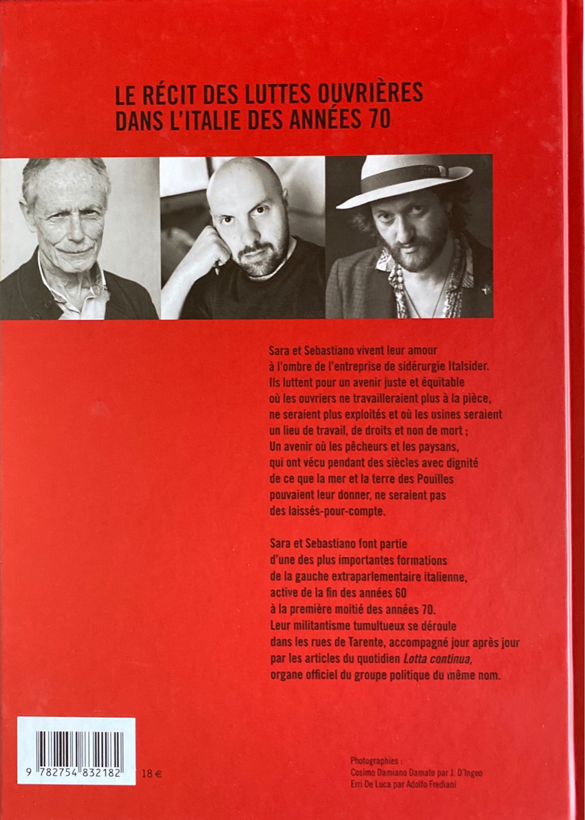 Quand l'heure H sonne, il ne faut pas baisser la tête mais se relever et se battre. On va suivre le parcours d'un couple Sara et Sébastiano qui luttent pour un avenir meilleur au sein de leur entreprise de métallurgie. L'action se situe dans les milieux de gauche des années 70 en Italie. Il s'agit en fait de militantisme pour une bonne cause. Il est vrai que les conditions de travail des ouvriers étaient difficiles et beaucoup perdraient la vie sur leur lieu de travail dans des accidents. Là également, les patrons viennent aux enterrements complètement affligés avec des larmes de crocodile mais le cinéma continue de plus belle une fois l'émotion retombée. Il s'agit de se battre contre les restructurations, le turnover, les licenciements abusifs, l'augmentation des rythmes et des charges de travail, la réduction des effectifs. Visiblement, les 35 heures ont été mis en application car elles servent à défendre l'emploi. Il faut partager le temps de travail et non travailler plus longtemps. C'est le discours servi dans cette BD qui ne rencontrera pas un écho favorable parmi les entrepreneurs voulant s'investir corps et âmes à leur travail. Toujours cette opposition entre les prolétaires et la bourgeoisie. Visiblement, cette industrialisation a provoqué la pollution de la mer dans les alentours de cette usine située à Tarente sur la côte italienne. Les déversements pétroliers ont intoxiqué la mer et les poissons. La culture des huîtres a par exemple disparu. Au niveau du dessin, je n'ai pas trop aimé cet effet crayonné sur chaque page. Il manque de la clarté. Pour autant, cela donne un charme particulier. Il est question de faire des révolutions pacifiques autour d'un bon repas préparé par la Mamma. C'est bien de refaire le monde et d'avoir une conscience politique pour changer la société.BDGest 2014 - Tous droits réservés