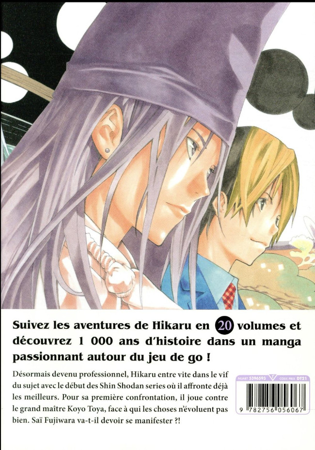 Résumé: Un jour, Hikaru, 11 ans, trouve dans une remise une vieille table de go. Soudain, surgit de celle-ci le fantôme qui y était enfermé : Saï Fujiwara, un génie du jeu de go de l'époque Heïan (VIIIe à XIIe siècle) s'introduit dans l'esprit de Hikaru. Acceptant de permettre à Saï de jouer au go contre d'autres joueurs, Hikaru fait la connaissance d'Akira Toya, fils du meilleur joueur japonais.