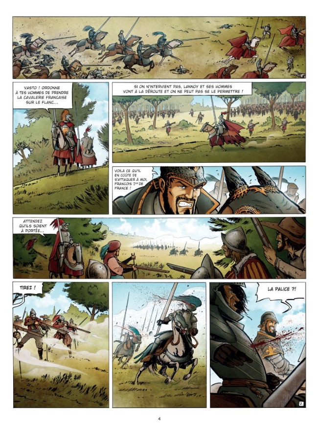 1515, Marignan ; voilà une des quelques rares dates dont les Français se souviennent encore assez bien, l’associant à un brillant succès. Néanmoins, peu s’en remémorent une autre, au moins tout aussi importante et symbolique : 1525 qui vit la défaite et la capture du triomphateur d’hier. C’est pourtant sur cet autre affrontement que s’ouvre Histoires de France. Cosignée par Lorànt Deutsch (comédien, acteur et auteur de Métronome), qui en est l’instigateur, et Sylvain Runberg, cette série vise à narrer les parcours de paires de personnages, certains illustres, d’autres moins connus, dont les actions et les choix ont eu une incidence non négligeable sur la construction de l’Hexagone. Ainsi, le premier tome est consacré à François Ier (1494-1547) et Charles III de Bourbon (1490-1527), longtemps considéré par ses détracteurs comme étant un des pires traitres à son pays.