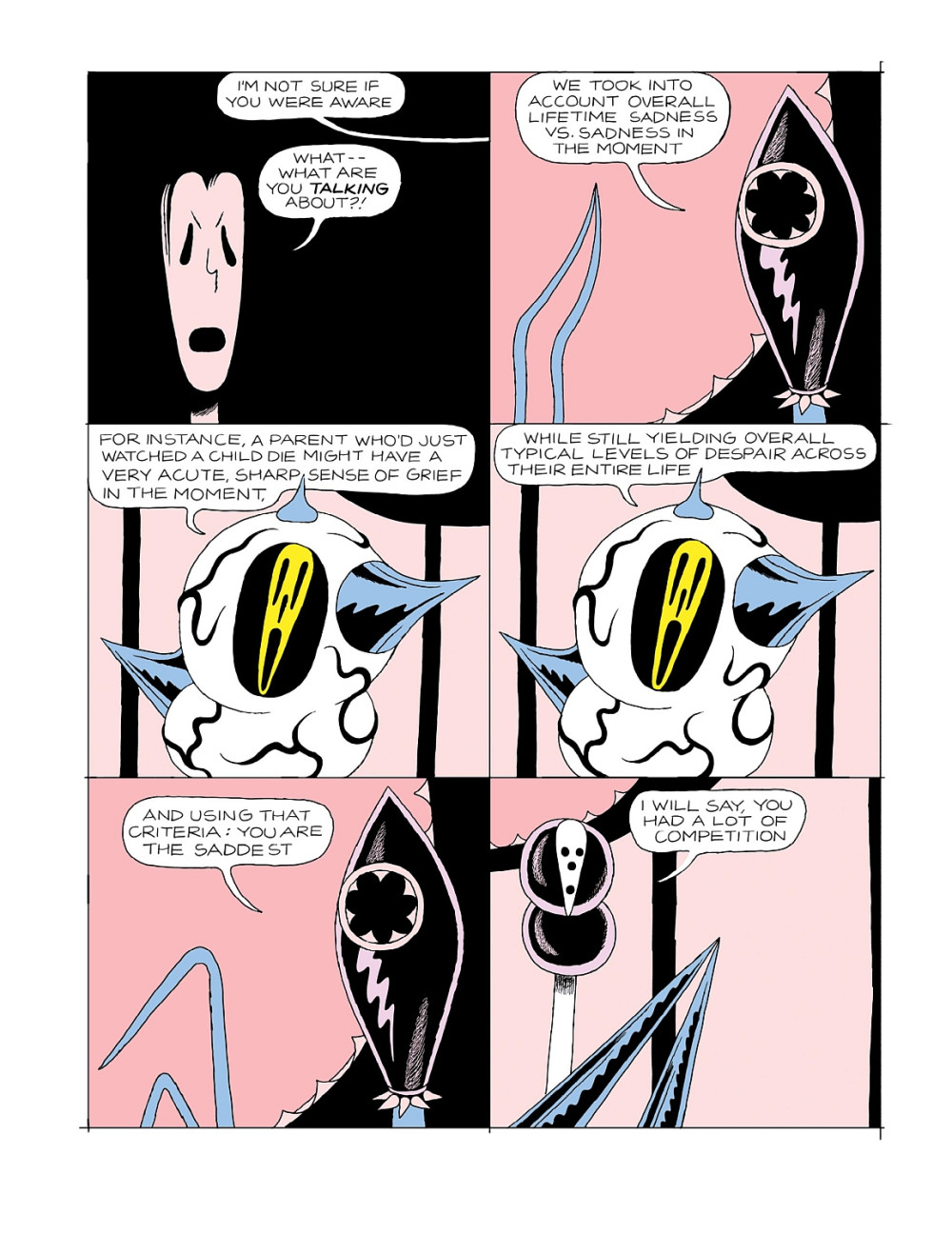 Résumé: “Ah, there’s that famous lip quiver!” says Jackie’s abductor and student. Jackie has been determined to be the “saddest living person in the entire world” by a mysterious team of alien abductors. His earthly musical celebrity is nothing compared to his emotional superstar status in the eyes of these curious and peculiar shape-shifters. Jackie is forced to perform his sadness over and over again on command, so his captors can study and master this very puzzling, very human emotion. Until just like that, Jackie is returned to his old life. Trying to comprehend what has happened, he joins a support group. It’s a sea of conspiracy theorists, emotional vampires, and simpatico “real” abductees. As each person tells their story, he realizes he may never know.