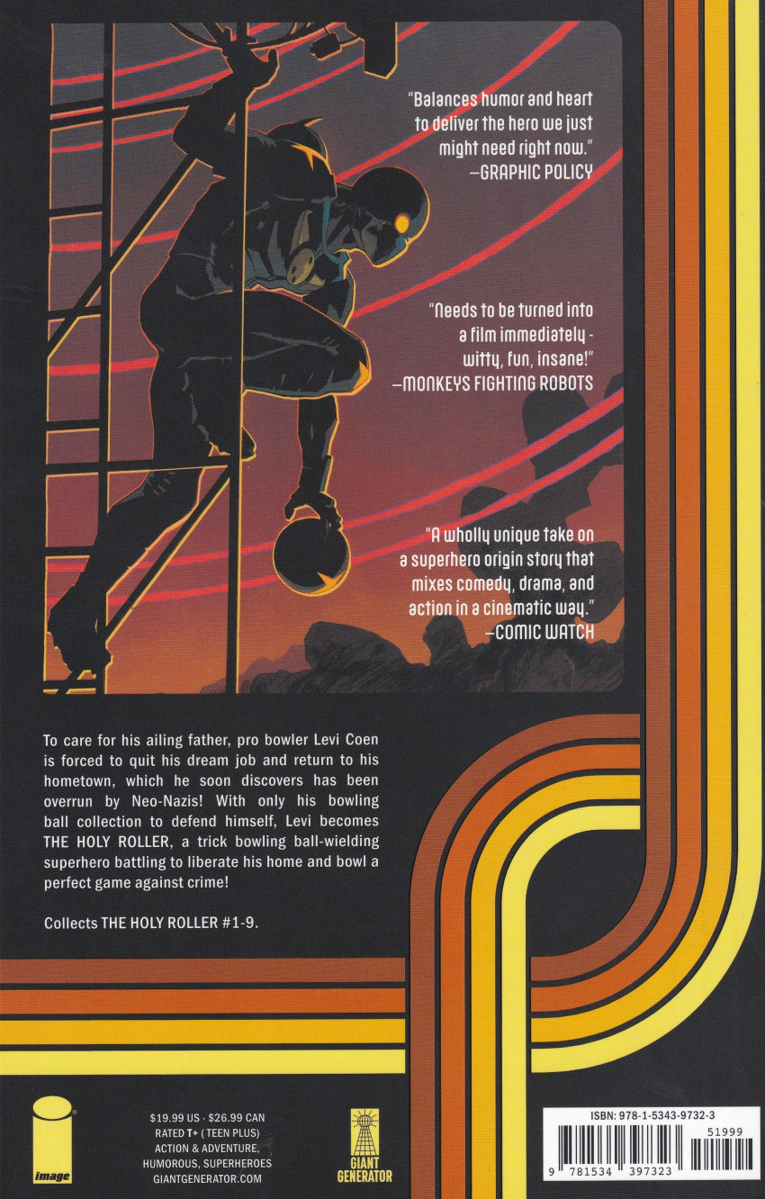 Résumé: To care for his ailing father, pro bowler Levi Coen is forced to quit his dream job and return to his hometown, which he soon discovers has been overrun by Neo-Nazis! With only his bowling ball collection to defend himself, Levi becomes THE HOLY ROLLER, a trick bowling ball-wielding superhero battling to liberate his home and bowl a perfect game against crime! Kingpin meets Inglourious Basterds meets Batman (that old chestnut) with equal parts action and humor!