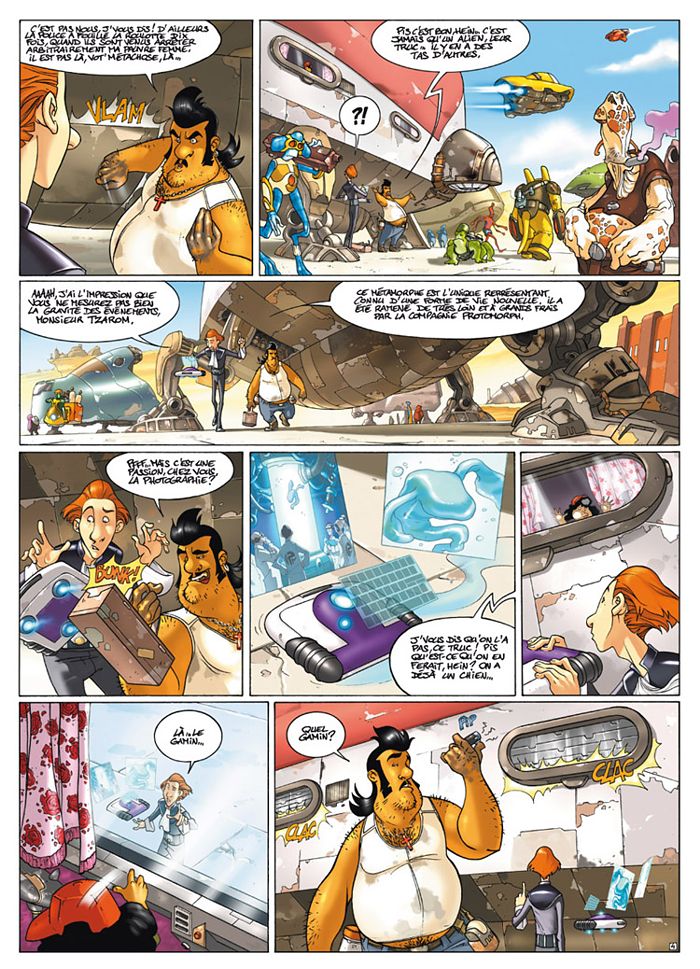 L'approche est tout autre, et le récit démarre sur les chapeaux de roue avec un cocktail humour-action qui repose avant tout sur des personnages truculents. De ce point de vue, la réussite est au rendez-vous. Il faut dire que l’album est porté par le dessin de Paul Cauuet, qui donne immédiatement le ton : il n’est pas virtuose, loin s’en faut, mais il est vivant et haut en couleurs. Les cases regorgent de détails amusants, la mise en scène est soignée, le mouvement bien rendu… et les couleurs, bien que probablement trop lumineuses au goût de certains, ont le mérite de donner une identité visuelle à la série. Le seul regret, à ce niveau, est une couverture peu élégante qui, loin de remplir son office, n’attire pas facilement le chaland.