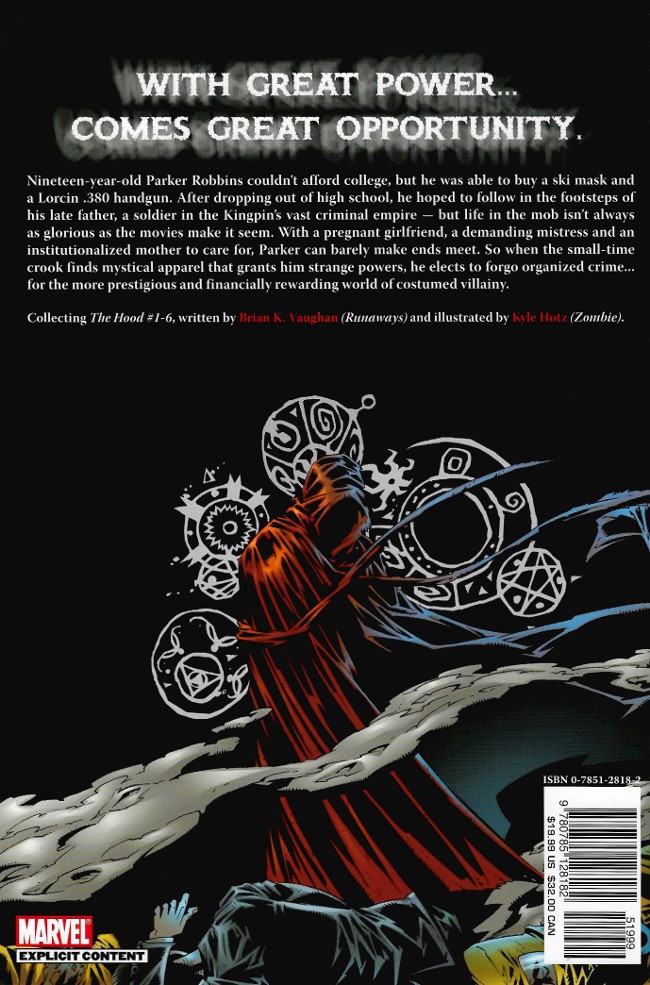 Résumé: With great power... comes great opportunity. Nineteen-year-old Parker Robbins couldn't afford college, but he was able to buy a ski mask and a Lorcin .380 handgun. After dropping out of high school, he hoped to follow in the footsteps of his late father, a soldier in the Kingpin's vast criminal empire - but life in the mob isn't always as glorious as the movies make it seem. With a pregnant girlfriend, a demanding mistress and an institutionalized mother to care for, Parker can barely make ends meet. So when the small-time crook finds mystical apparel that grants him strange powers, he elects to forgo organized crime... for the more prestigious and financially rewarding world of costumed villainy.