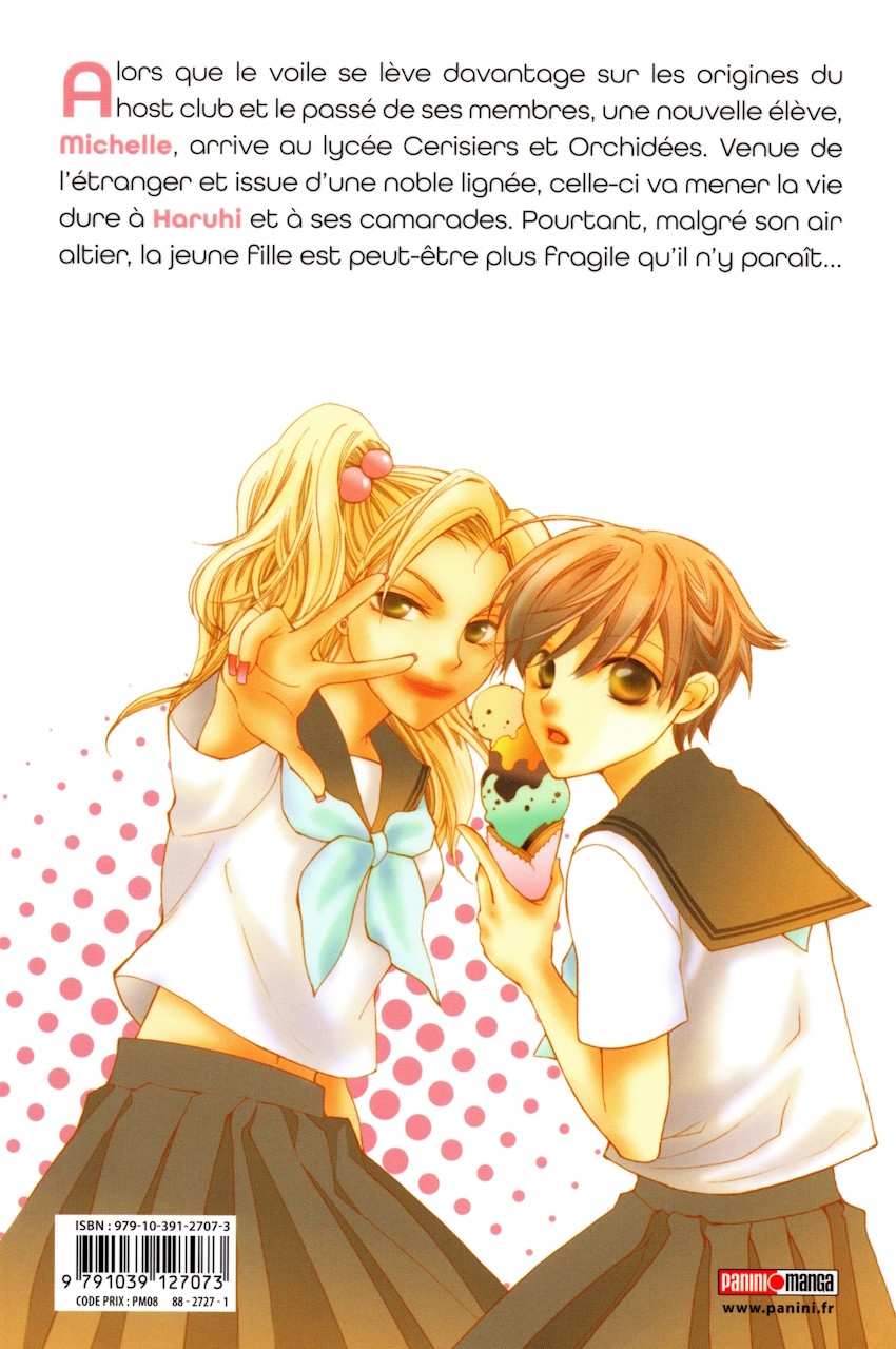 Résumé: Alors que le voile se lève davantage sur les origines du host club et le passé de ses membres, une nouvelle élève, Michelle, arrive au lycée Cerisiers et Orchidées. Venue de l'étranger et issue d'une noble lignée, celle-ci va mener la vie dure à Haruhi et à ses camarades. Pourtant, malgré son air altier, la jeune fille est peut-être plus fragile qu'il n'y paraît...