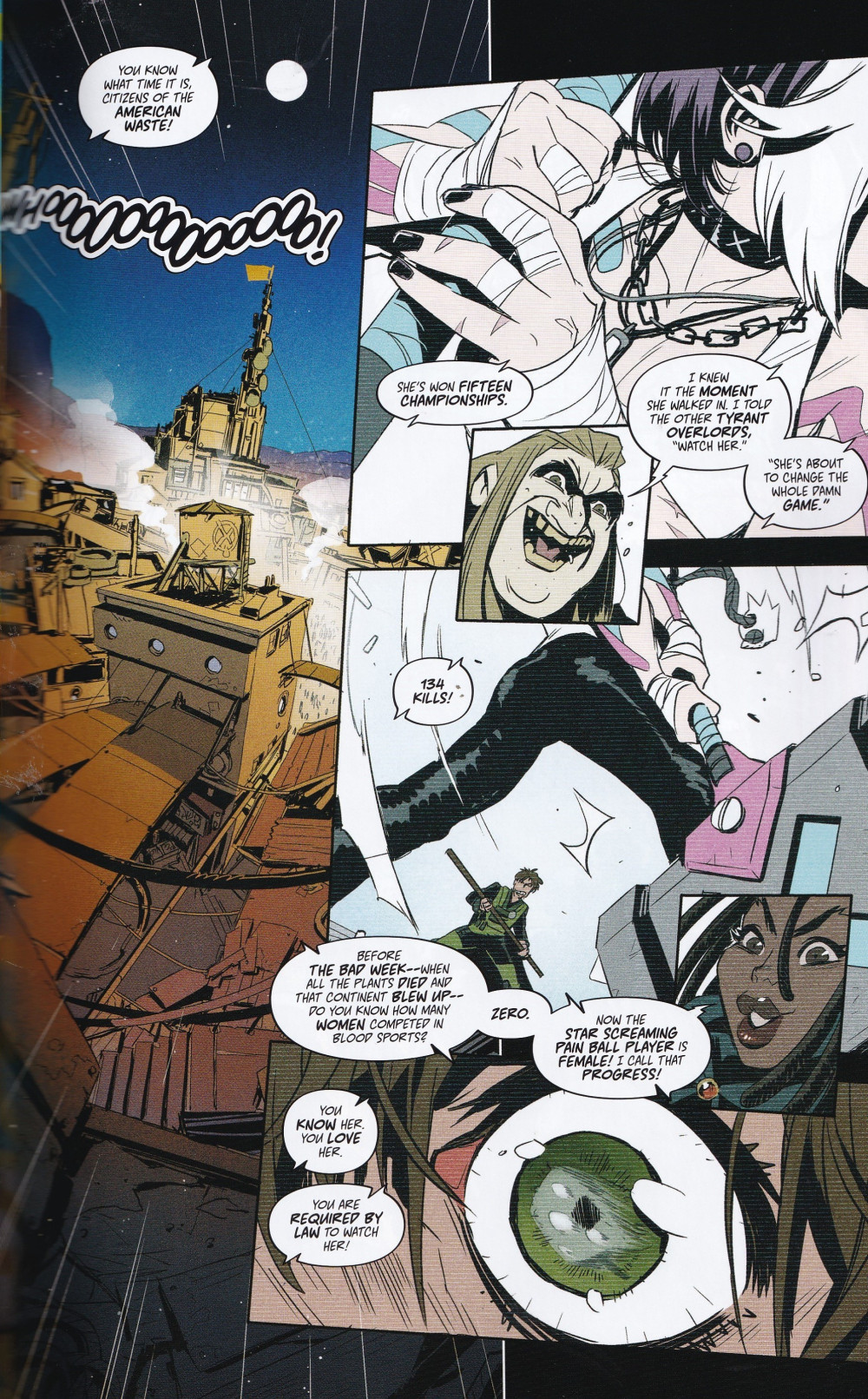 Breakout writer of DC’s Amazons Attack event and screenwriter Josie Campbell (Wonder Woman, She-Ra And The Princesses Of Power) along with rising star artist Alessio Zonno (Mighty Morphin Power Rangers/Teenage Mutant Ninja Turtles) bring sports action to post-apocalyptic America with enough comic relief at its brutal heart to keep anyone along for the ride!