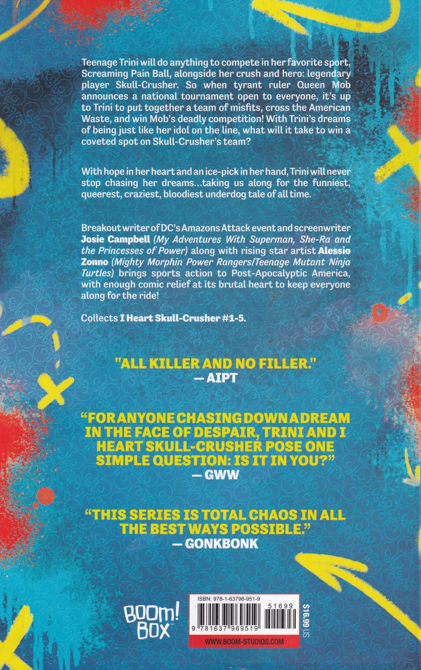 Résumé: Teenage Trini will do anything to compete in her favorite sport, Screaming Pain Ball, alongside her longtime hero Skull-Crusher, and a gaggle of misfits is just what she needs to cross the American wastes and battle in Queen Mob’s deadly tournament. With Trini’s dreams of being just like Skull-Crusher on the line, what will it take to win a coveted spot on their team?