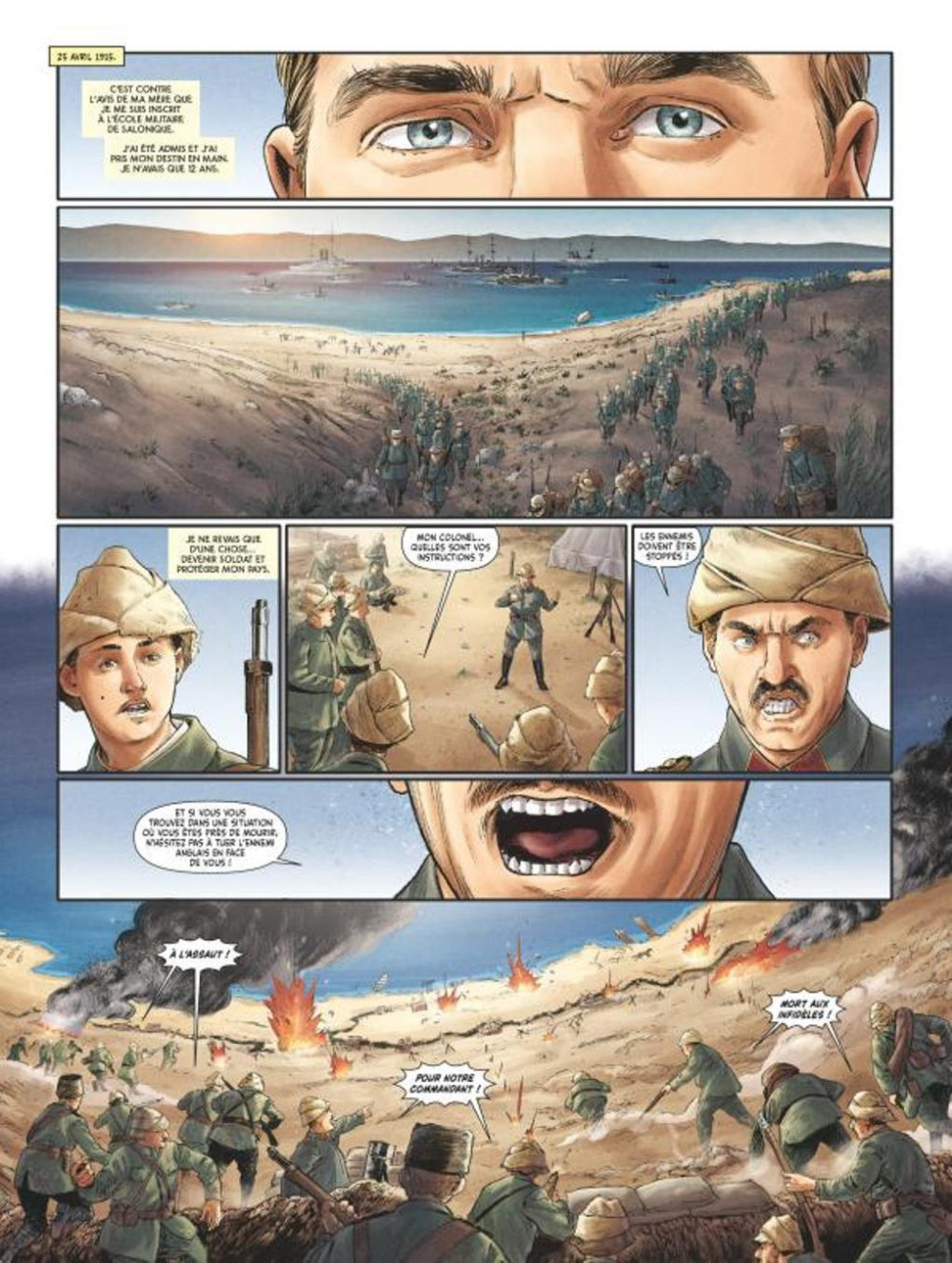 Quarante-et-unième tome d’Ils ont fait l'Histoire, la collection historique globale des éditions Glénat/Fayard, Atatürk se concentre tout particulièrement sur les années «révolutionnaires» (1920-23) de Mustafa Kemal. De ce fait, plus qu’une biographie sensu stricto, l’album raconte surtout l’émergence de la Turquie plutôt que la vie de son premier président. Bien en place et très résumée, la narration se montre agréable et pose les différentes étapes de ces évènements d’une manière très accessible. Sans vraiment briller et en évitant de bouleverser les codes en place, Marie Bardiaux-Vaïente et Andrea Meloni offrent une écriture et une mise en image de qualité et parfaitement claire.