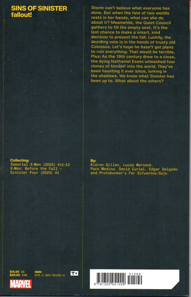- Info édition : Collects Immortal X-men (2022) #11-13 & X-Men : Before the Fall - Sinister Four (2023) #1