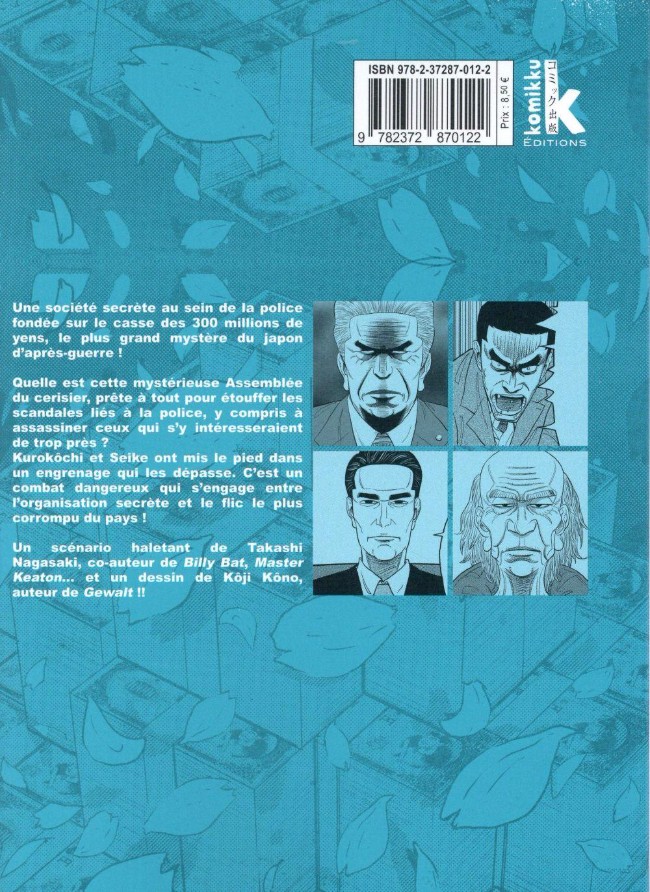 Quelle est cette mystérieuse assemblée du cerisier, prête à tout pour étouffer les scandales liés à la police, y compris à assassiner ceux qui s’y intéresseraient de trop près ? Kurokôchi et Seike ont mis le pied dans un engrenage qui les dépasse. C’est un combat dangereux qui s’engage entre l’organisation secrète et le flic le plus corrompu du pays !