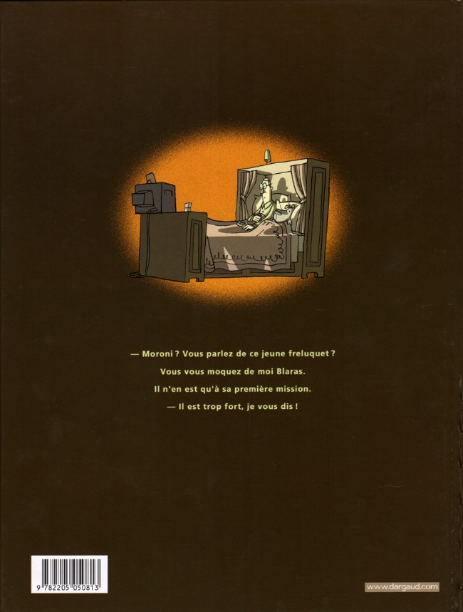 Moroni? Bête à manger de l'avoine. Plus con que lui, tu meurs... Au début, on ne sait pas trop où ça mène et puis, nous voici bien embarqué dans cette histoire où cet imbécile de première rêve de devenir l'émule d'un grand enquêteur; disons Colombo! Le problème c'est qu'il n'y pige que dalle, le pauvre.BDGest 2014 - Tous droits réservés