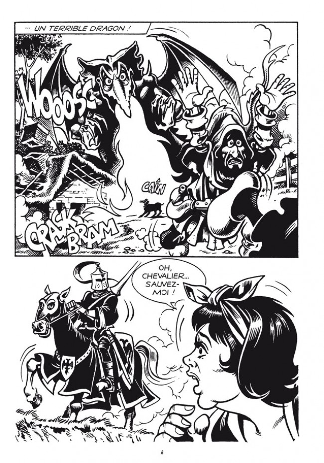 Malgré le titre donné au volume, qui oriente l’acheteur vers les sentiers d’un imaginaire fantasmatique moderne bien balisé, c’est dans un univers médiévalo-merveilleux que se situent la plupart des ces histoires. Dix chevaliers pour un magicien, la première du recueil, est peut-être la plus réussie. Dans cette fantaisie résolument légère et ludique, une princesse aussi jolie que portée sur la chose se trouve 110 pages durant au centre de toute une série de malédictions et de sorts magiques, dont la résolution passe généralement par le biais de joyeuses galipettes. Graphiquement, le trait de Magnus n’est pas encore celui qui fera sa gloire, mais il convient de souligner son art de dessiner ses héroïnes, et l’originalité du contraste introduit entre les lignes adoptés pour celles-ci et l'allure des personnages masculins, plus cartoonesques et grotesques. S’il n’y a pas lieu de crier au chef-d’œuvre, cette histoire est néanmoins assez plaisante et mérite l’attention des amateurs.