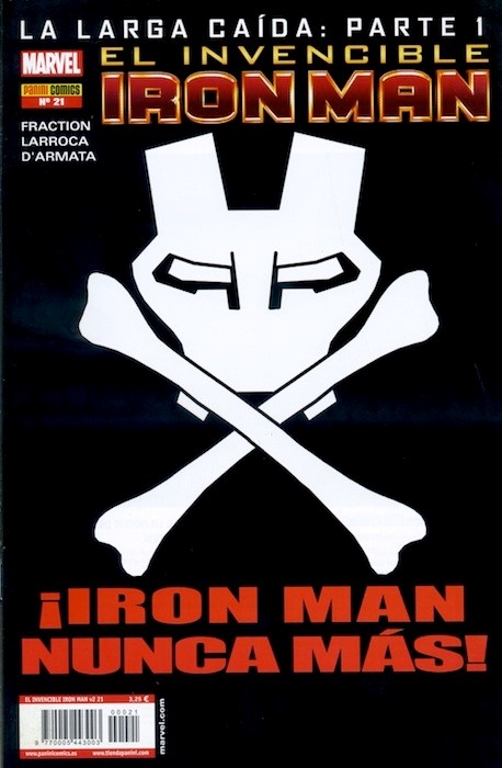 Résumé: Aquí comienza la más importante aventura de Iron Man en años. Prepárate para la caída de Tony Stark. Todo lo ocurrido desde "Miedo Encarnado" ha afectado profundamente al hombre detrás de la máscara. Acorralado por sus enemigos, fustigado por el propio gobierno de Estados Unidos y bajo la sombra del alcoholismo, Tony tendrá que tomar la decisión más importante de su vida. ¡Con el final de la etapa de Fraction/Larroca a la vuelta de la esquina, cualquier cosa puede ocurrir!