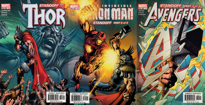 Histoire en 3 parties qui se poursuit depuis Thor (1998) 58 et dans Avengers (1998) 63. les 3 couvertures forment un dessin complet