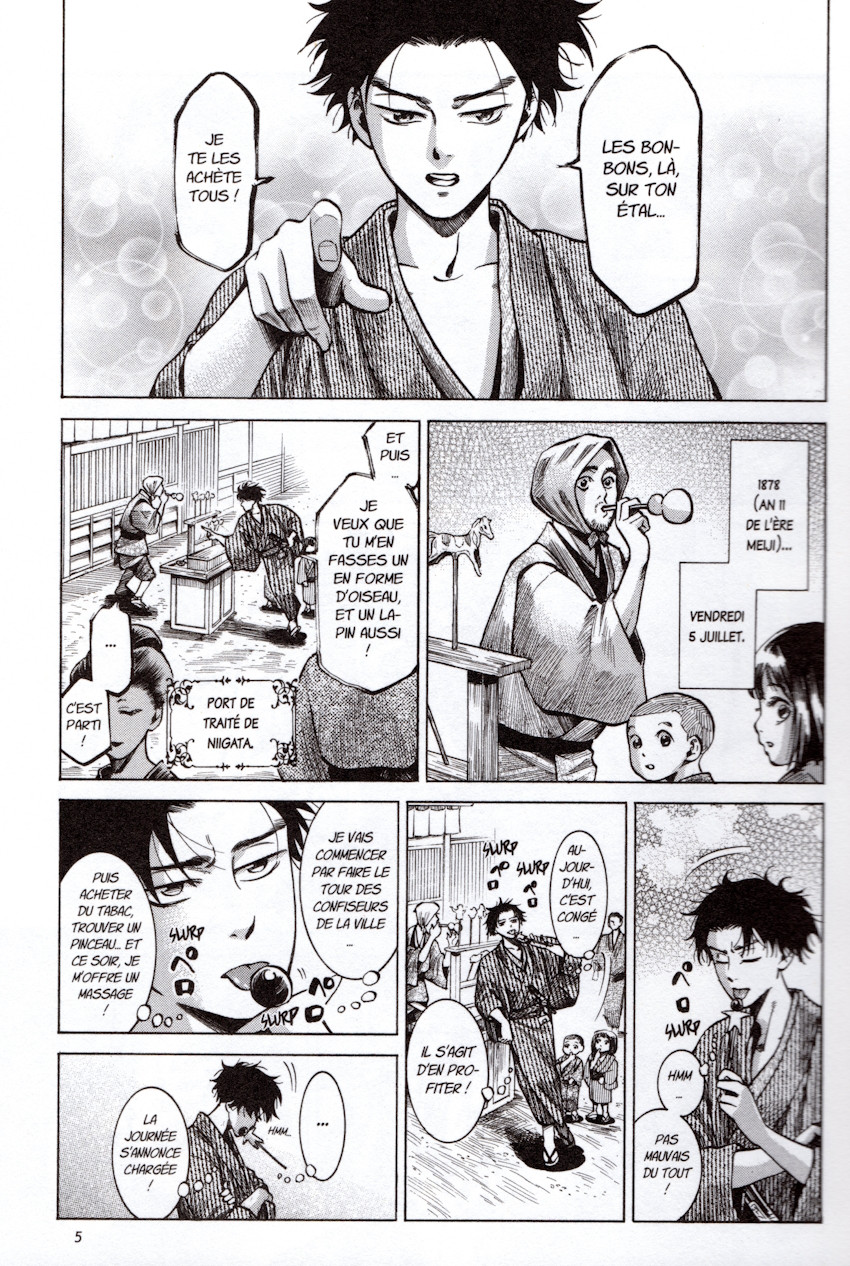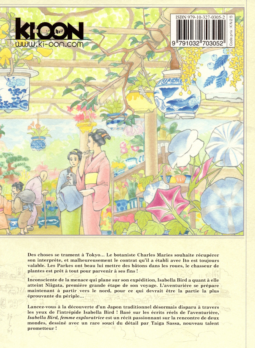 Résumé: Des choses se trament à Tokyo... Le botaniste Charles Maries souhaite récupérer son interprète, et malheureusement le contrat qu'il a établi avec Ito est toujours valable. Les Parkes ont beau lui mettre des bâtons dans les roues, le chasseur de plantes est prêt à tout pour parvenir à ses fins ! Inconsciente de la menace qui plane sur son expédition, Isabella Bird a quant à elle atteint Niigata, première grande étape de son voyage. L'aventurière se prépare maintenant à partir vers le nord, pour ce qui devrait être la partie la plus éprouvante du périple...