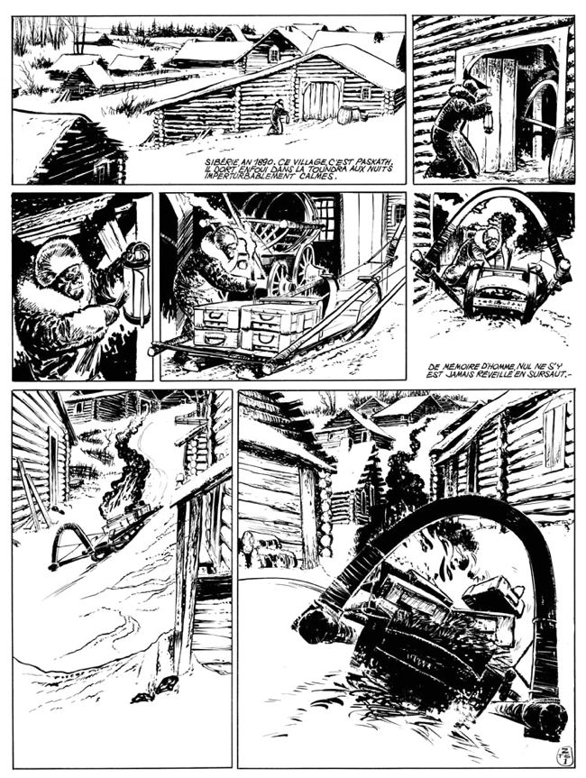 C’est sous une couverture inédite que j’avais découvert "Le testament de Sibérie", initialement paru en 1974, et réédité par les éditions "des ronds dans l’O" . On a souvent reproché à René Follet de ne pas s’attacher les services d’un scénariste digne de son talent. Pourtant en aucun cas le dessin de René Follet était en cause, au contraire, il était le principal atout de ces bandes dessinées. Ici, un scénario simple mais efficace, une course poursuite dans les steppes enneigées de Sibérie, une histoire d’amitié de vengeance, un monde viril dans une nature hostile, le tout magnifiquement mis en image par René Follet. Tout au long de l’histoire, des personnages tout en couleur (je pense notamment à Stepim), assez stéréotypés tout de même (par exemple, Vassili, l’archétype du méchant) mais qui viennent apporter une touche d’humour à cette histoire (voir l’épisode de la réserve de viande). Le dessin et l’intrigue sont certes datés voire un peu désuets mais j’ai aimé retrouver l’ambiance des petits formats, en noir et blanc, de mon enfance. Cet opus possède certes un charme désuet mais dans cette expression il ne faut pas oublier le mot "charme". Un petit bémol, c’est l’erreur sur le quatrième de couverture concernant la recherche du testament : il ne s’agit pas du testament du père d’Ivan Zourine mais celui du père de Mickaël Mistirine. Une réédition de qualité, une histoire qui nous entraînent dans l’hiver Sibérien, le tout servi par un beau dessin de René Follet.. que demander de mieux ?BDGest 2014 - Tous droits réservés