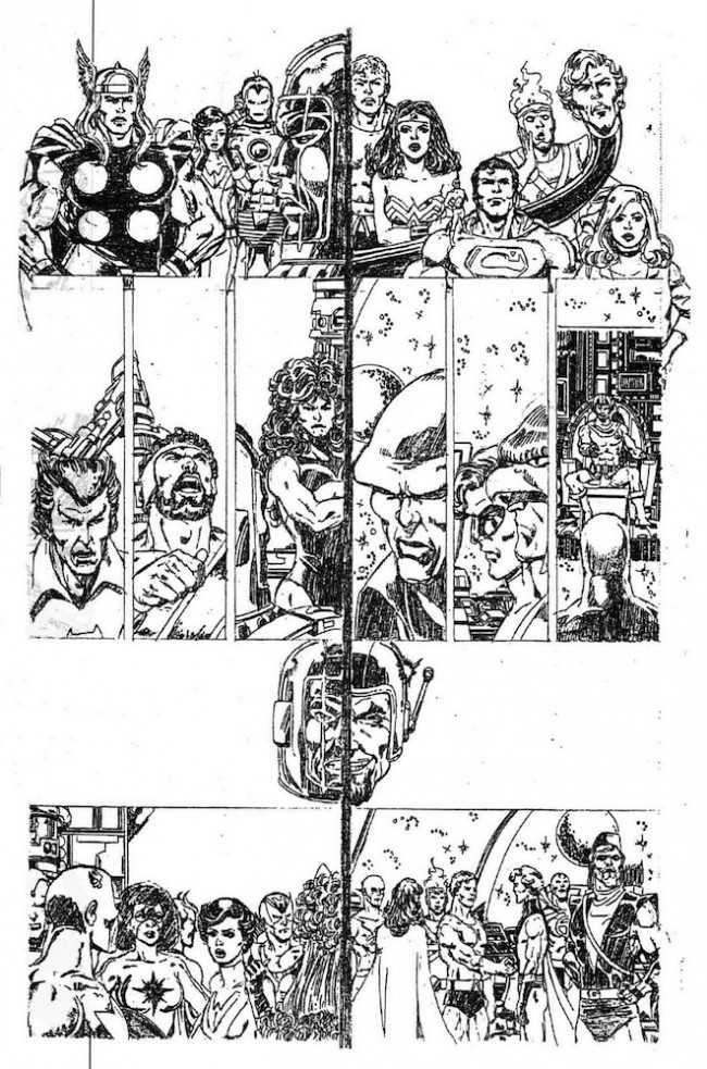 Info édition : Two volume hardcover & dust jacket, slipcased set. The second volume features George Pérez's original 21 pages of pencils from the never published 1980s crossover, an article about the first attempt at the crossover by K.C. Carlson, the miniseries proposal and plot development, rough scripts, a Pérez portfolio of art done to commemorate the project, annotated notes from Kurt Busiek to the characters, and other assorted background information.