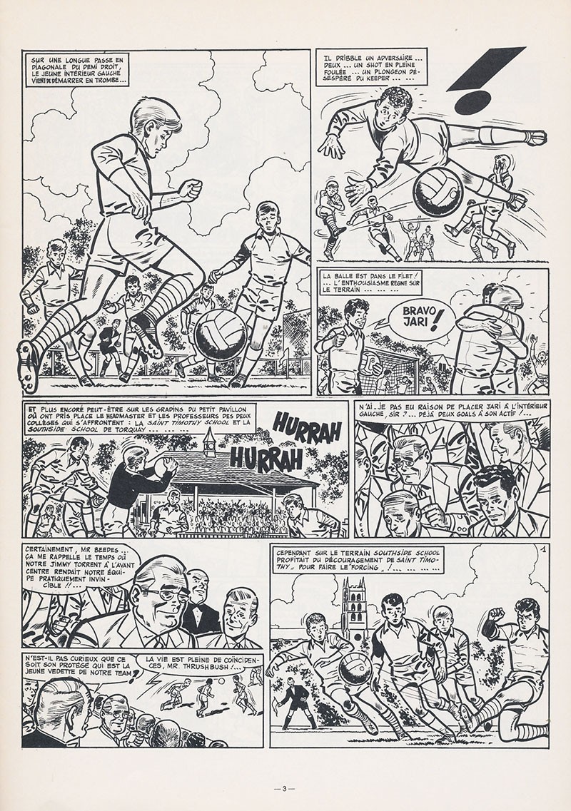 Tout ça pour ça ! C’est à croire qu’une malédiction pèse sur les épaules du jeune champion anglais. Snobé par les éditions du Lombard, il lui aura fallu attendre plus de 15 ans et la reconnaissance d’une édition N&B pour que l’on nous sorte…la première case de l’histoire en guise de couverture. Dire que depuis 1962 traîne une magnifique couv’ du journal Tintin (une Jari cover anglaise, pas écossée mais qui fait son pois) qui ne demandait qu’à faire l’affaire. Et cette typo de supermarché à la place du lettrage "Tintin" d’origine !… Encore heureux qu’on ne nous ait pas coupé la scène finale, au point ou nous en sommes. Une sorte de résurection aquatique, épique et symbolique, mais pas pratique. Jari aurait pu acccourir avec une trousse de première urgence et surtout un vieux pneu attaché à une corde pour faire office de bouée de fortune. A une condition : qu’il n’arrive pas sur la tête de la victime, fou-rire et bonne tasse assurés. Mais ne le blâmons pas. Ce n’est pas tous les jours que l’on sauve la vie de son tuteur. Hydrocution, agression, disparition, dépression et points d’exclamations. N’en jetez plus, rien ne sera épargné au pauvre Jimmy, pour notre plus grand plaisir. Il n’aurait plus manqué que notre champion de tennis soit victime de racket. Une vraie malédiction.BDGest 2014 - Tous droits réservés