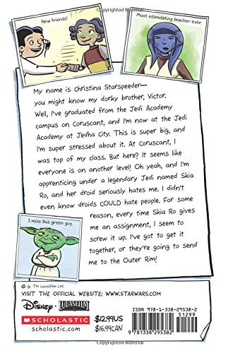 Résumé: Christina Starspeeder, legendary Padawan and sister to Victor Starspeeder, has graduated from the Jedi Academy at Coruscant. But that doesn't mean her education is over! Just the opposite. Now Christina is a student at the advanced Jedi Academy at Jedha City. It's super big, and super stressful. At Coruscant, Christina was top of her class. But at this new school, it seems like everyone is on a different level. To make matters worse, she's apprenticing under legendary Jedi Skia Ro, whose droid seems to have it out for Christina. Since when did droids come preprogrammed with attitude? Every time Skia Ro gives Christina a task, she manages to screw it up. Can Christina step it up at this new school? Or will she get booted out to the outer rim? Find out in this all-new volume of the New York Times bestselling series Star Wars: Jedi Academy!