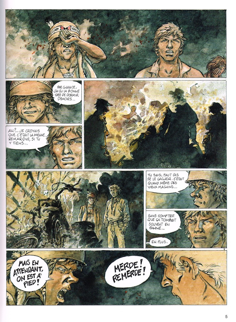 En fait, le scénario semble improvisé, comme si un semblant d'inspiration était arrivé au tiers de l'album. Une sorte d'exercice de style ou le caprice d'un très grand auteur, qui peut imposer ce qu'il veut. C'est Hermann, tout de même, 80 bougies soufflées l'été dernier. Ce '' Et puis, merde'' me semble assez révélateur de la fin d'une série et d'une page de l'histoire de la Bd.Le 17/10/2018 à 15:52:39