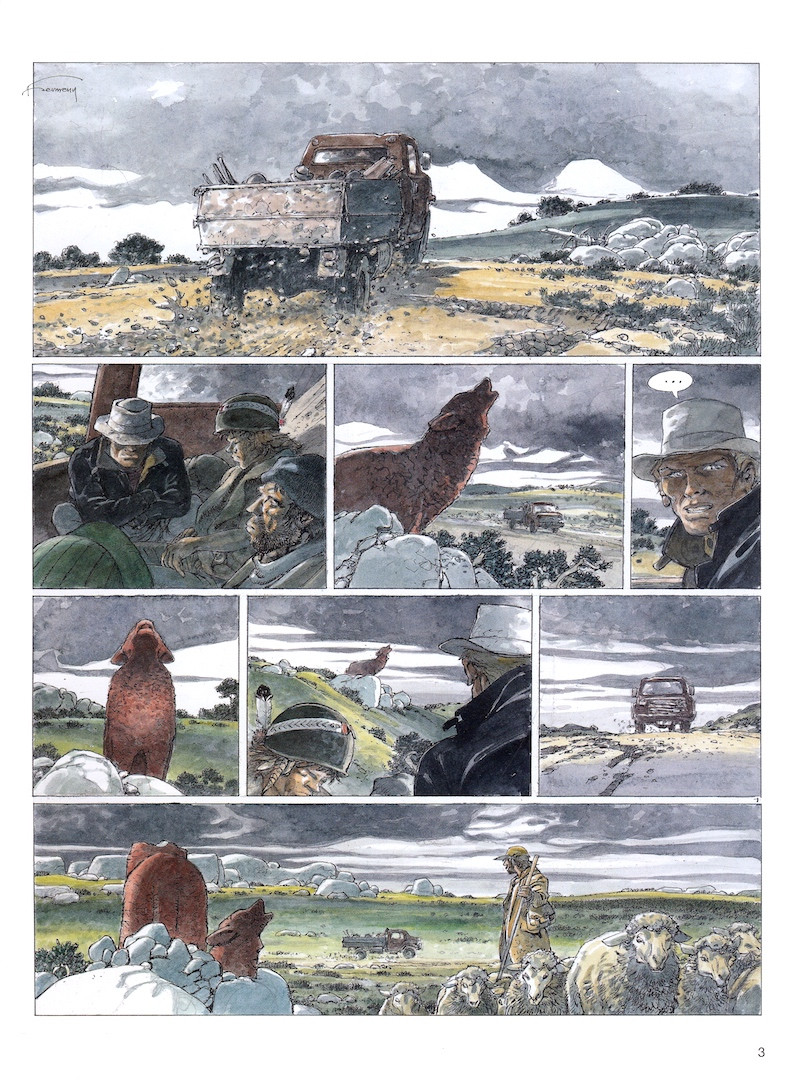 Résumé: Lorsque Jeremiah et Kurdy débarquent dans un patelin perdu entouré de prés où paissent des moutons, ils ne souhaitent que boire un coup et si possible se refaire un peu de blé au poker dans le premier bar potable. Mais les terres agraires du coin ne sont rien d'autre qu'une lande immense laissée en friche et à peine surveillée par des bergers. Or, des bêtes sauvages et féroces dévastent les troupeaux et attaquent les humains depuis quelques temps. Virna, jeune bergère qui semble être en froid avec la loi, emmène Jeremiah et son comparse dans le ranch familial. Alors que les deux hommes pensaient n'y rester qu'une nuit, ils se retrouvent embarqués en pleine guerre de territoire. Une part de la population décide de vendre ses terres à un riche notable du coin, alors que certains fermiers souhaitent continuer à faire paître leurs troupeaux. Mais les loups ne leur laissent guère de choix. Une fois le brouillard tombé, c'est une bête titanesque qui décime les moutons et leurs gardiens. Pour les beaux yeux de Virna, Jeremiah va prendre parti et se battre pour remporter un combat au sein d'une guerre qui semble déjà perdue.