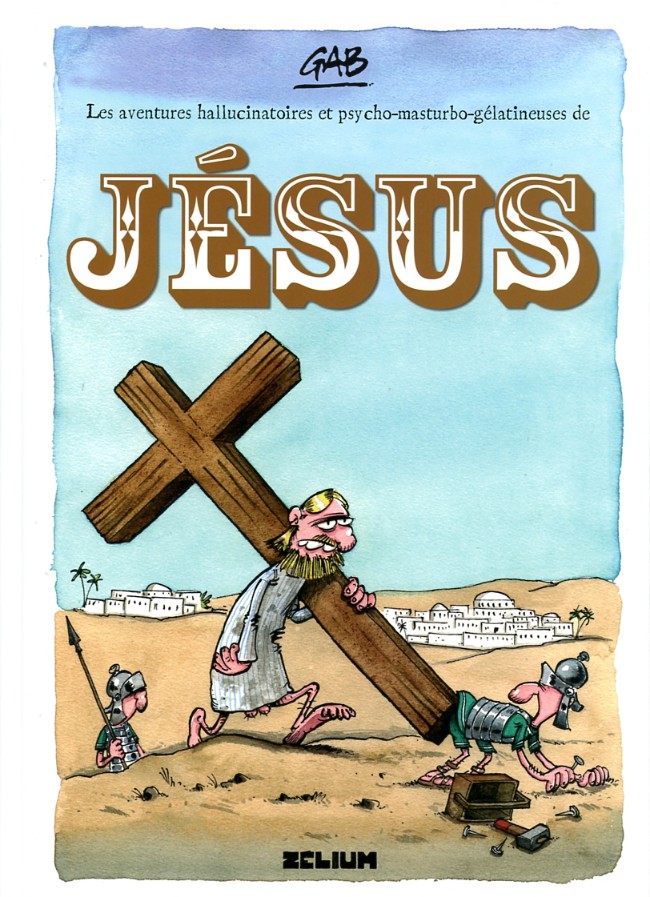 Résumé: Nous connaissions les truculents dessins de Gab et son talent particulier pour dessiner veaux, vaches, cochons, poulets râleurs et grandes gueules. En revanche, nous ignorions encore son penchant pour les histoires saintes… Ces « aventures hallucinatoires et psycho-masturbo-gélatineuses » de JÉSUS, version revue et corrigée des évangiles, mettent en scène un prophète iconoclaste, bien au delà de ce que l’on peut lire dans le nouveau testament. Chaque étape de sa vie en Palestine nous est comptée avec l’humour décalé de Gab ; sa lecture s’en trouve transformée, non plus en un sempiternel chemin de croix, mais en une succession de péripéties plus drôles les unes que les autres ! Sans plus de ferveur religieuse, on ressort de la lecture de ce récit déjanté avec au moins une certitude : Dieu est humour et Gab est son prophète.