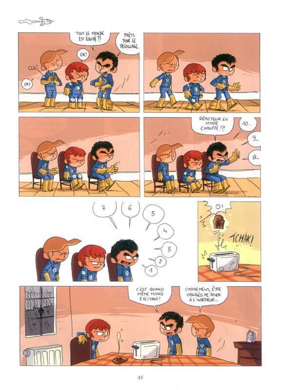 Résumé: Suivez les aventures époustouflantes de Max, Théo et Léon, trois enfants qui ont enfilé leur tenue d’astronaute pour explorer l’espace grâce au seul pouvoir de leur imagination. À bord de leur navette (en carton), ils vont partir aux confins de la galaxie (enfin,de leur chambre). Et attention, extraterrestres et autres soldats intergalactiques