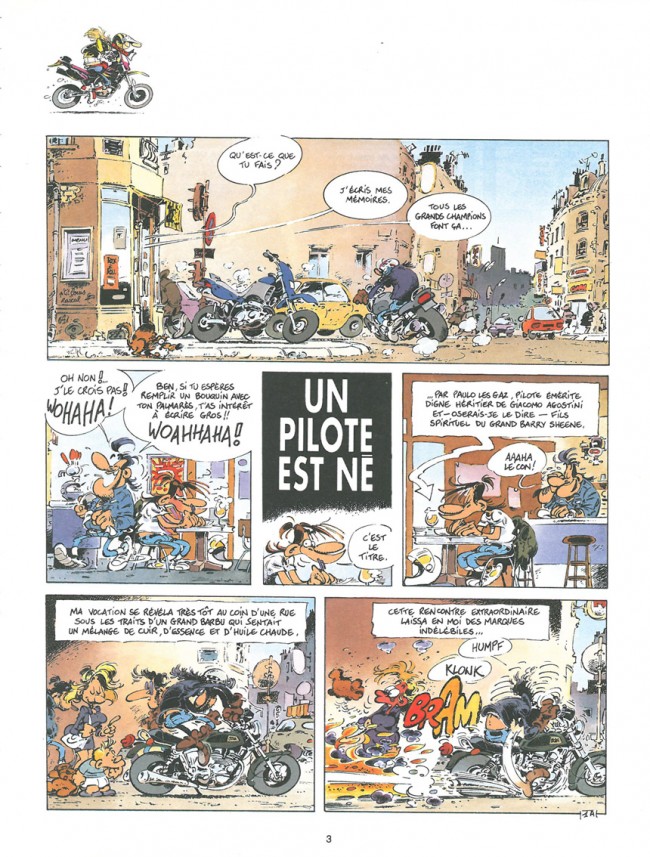 Super cette série, qui plaira aux amateurs et aux passioné de bécanes, mais qui peut aussi plaire a n'importe qui, les caricatures sont bien vivantes, et réussis, les phrases : "parce que vous attaquiez vous ??"