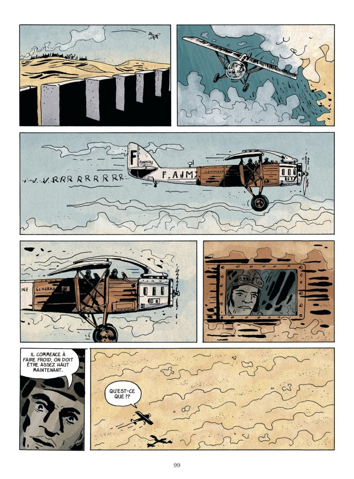Les auteurs, Judith Cohen Solal (psychanalyste et autrice) et Jonathan Hayoun (essayiste et documentariste), après plusieurs ouvrages écrits à quatre mains réinterrogeant inlassablement l’antisémitisme, proposent leur première bande dessinée. Ils parviennent à condenser en un album un itinéraire hors norme, dont chaque année pourrait être l’objet d’un tome. Avec Kessel, il suffit de se pencher sur ses repères biographiques et son œuvre pour être submergé par la masse d’informations à disposition. Comment sélectionner ? Tout choix est discutable. Les auteurs ont fait le leur, trouvant un équilibre entre le journalisme, la littérature et les démons personnels, ouvrant des portes que le lecteur franchira s’il le veut. Comment ne pas être secoué de curiosité lorsque le baroudeur dit de la bataille de Dunkerque que c’était un « spectacle d’une beauté hallucinante » ? Comment l’imagination ne s’enflammerait-t-elle pas en lisant qu’ « on ne connait pas une ville si on ne pénètre pas ses nuits » ?