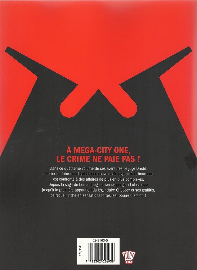 Résumé: Dans ce quatrième volume de ses aventures, le juge Dredd, policier du futur qui dispose des pouvoirs de juge, juré et bourreau, est confronté à des affaires de plus en plus complexes. Depuis la saga de L’enfant juge, devenue un grand classique, jusqu’à la première apparition du légendaire Chopper et ses graffitis, ce recueil, riche en sensations fortes, est bourré d’action !