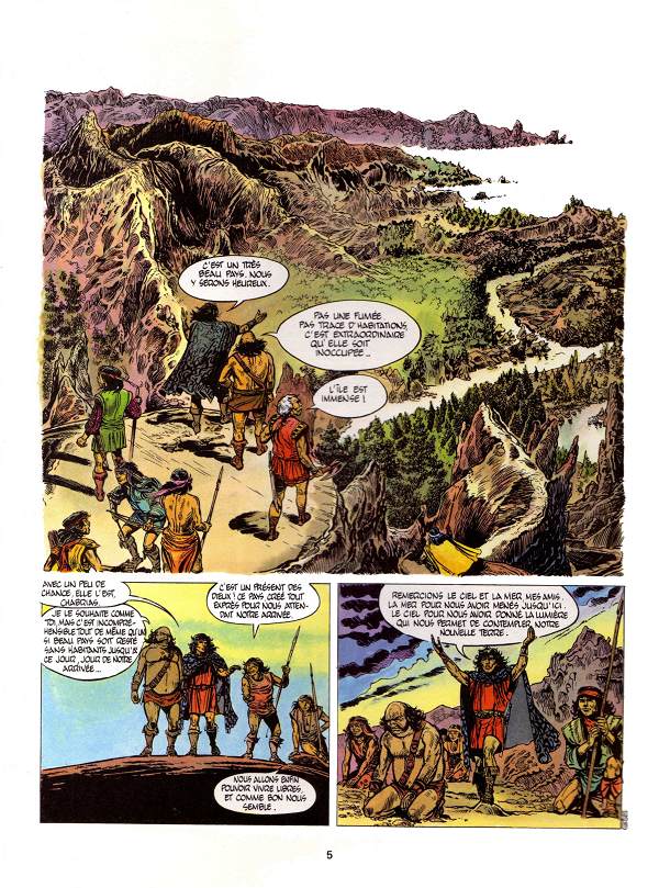 Résumé: Jugurtha, accompagné de Chabrias, décide d'emmener ses compatriotes numides, ainsi que des Gaulois, vers de nouvelles terres pour s'établir et vivre en paix. Très vite cette nouvelle "société" s'installe sur un île abandonnée, chacun trouvant sa place et sa fonction, tous heureux. Un jour pourtant débarquent des bateaux vickings, eux aussi là pour trouver refuge. Bien que cela commence mal les deux communautés vont très vite devenir amies grace aux bons soins de Chabrias et de la belle Svannée. Pendant ce temps là Chabrias découvre une étrange ville, abandonnée elle aussi, qui semble surgir d'une autre époque. Quels secrets se cachent derrière ces murs ?