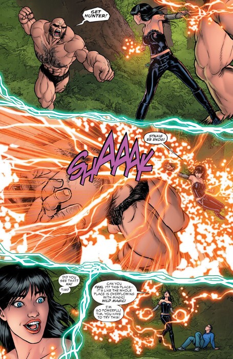 Unsure of what transpired when Tim and Zatanna disappeared, the remaining members of JLD, with the help of Tim Hunter's father, manage to transport themselves to the "Wild World" and soon find that the rules of magic here are very different and very deadly.