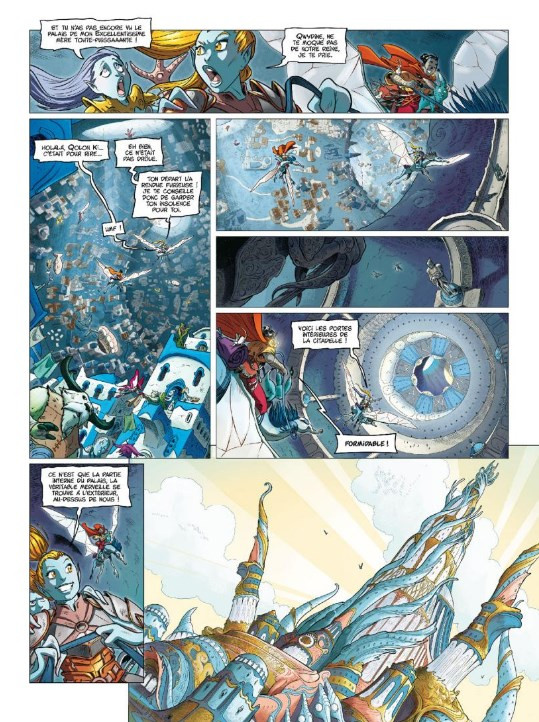 Et pour cause, l’un des grands atouts de ce titre est de bâtir un monde ni trop complexe ni trop simpliste, dans lequel les bédéphiles en herbe peuvent laisser se promener leur imagination. Bien qu’usant de ficelles connues, le résultat est très efficace. Les choix graphiques y sont aussi pour quelque chose. Lucio Leoni et Emanuela Negrin tiennent parfaitement leurs personnages au design bien senti. Les plans sont variés et les couleurs – une donnée importante de la saga – d’1ver2ânes appliquées. À plusieurs reprises, de vastes cases riches en détails sont proposées et explorent l’architecture de la ville. Les artistes sont également à l’aise pour traduire le soupçon d’humour qui traverse l’histoire (bien incarné par Zlub et Drabul).