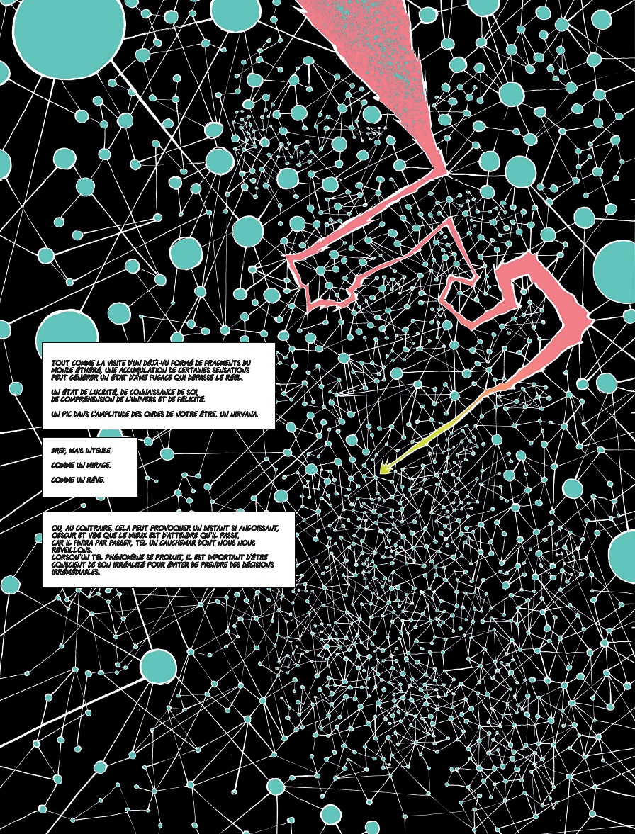 Une mise en page pop « Karmen » reprend le thème d’« Essence » de Benjamin Flao : un ange vient accompagner une âme pendant les quelques secondes qui séparent de vie à trépas. Si la vraie héroïne de l’album est Catalina, Guillem March a souhaité insister sur le côté ésotérique de l’aventure en faisant de l’ange l’héroïne éponyme de son album et en la mettant en avant sur une couverture d’un rouge claquant : rouge comme le sang qui s’écoule de la jeune suicidée, rouge comme le code, rouge comme la passion aussi. Karmen (avec un K comme Karma) est présentée dans une étonnante pose de contrition : elle ne regarde pas le lecteur et a la tête baissée comme prise en faute. Sa chevelure rose et sa combinaison de squelette donnent l’impression qu’elle porte un déguisement d’Halloween. Le rose adoucit la violence de la couleur du fond et donne du peps. Cette couverture attire l’œil. On ne sait pas trop vers quelle histoire nous allons être embarqués d’autant que la quatrième de couverture est énigmatique : elle ne montre que l’héroïne en plein vol, sur trois vignettes, entourée d’autres gens. On a donc envie d’en savoir davantage. La mise en page est tout aussi détonante et surprenante : styles et format des cases varient. Il y a des pleines pages et même des doubles pages qui s’affranchissent du gaufrier. Les fonds ne respectent pas la tradition non plus : ils sont souvent en couleurs. La première page est très intrigante et ressemble à un tableau de Pollock passé sous le pinceau pop d’Andy Warhol ! Elle est reprise à la 4eme. Seul le récitatif change et l’on comprend qu’on a affaire à une sorte de prologue. Une œuvre entre poésie et dynamisme Le prologue met en place des flashbacks qui seront explicités par la suite. La juxtaposition et l’ellipse pourraient perdre le lecteur mais l’on comprend qu’à chaque fois ces épisodes concernent Catalina et son ami d’enfance Xisco. L’arrivée de Karmen et son rôle sont très bien expliqués également par le raccourci : on voit Catalina assise à discuter sur les toilettes de la salle de bains et quand elle sort en compagnie de Karmen, son corps inanimé est dans la baignoire rouge de sang. Au départ, l’histoire peut paraître étrange par ce mélange des genres : l’auteur hésite entre une chronique amoureuse et une histoire fantastique. L’album est volumineux (160p) et séparé en 4 chapitres de longueur très inégale ; C’est d’ailleurs le reproche principal que je lui ferai : un déséquilibre dans la composition. La promenade à Majorque de Catalina et Karmen est trop longue et pas assez rythmée. On a l’impression que March se fait un « trip » de dessinateur au détriment de l’histoire. Les trois autres chapitres : ceux de l’introspection, de la rencontre des autres, de la résolution du quiproquo amoureux et de la confrontation de Karmen et des fonctionnaires de l’au-delà paraissent, au contraire, trop courts pour brasser tant de thèmes. Certains dialogues sonnent un peu creux aussi mais l’album a cependant un atout indéniable et de taille : son dessin ! Les couleurs sont plutôt pastel. Ce qui surprend vu le thème. Les décors sont particulièrement soignés et réalistes et permettent d’accorder plus de crédibilité à cette histoire fantastique. Certaines planches deviennent abstraites. Il y a de très beaux effets de transparence et de superposition. March rend un vibrant hommage à sa ville natale : on voit Palma de Majorque sous tous les angles … et l’héroïne aussi. L’auteur réussit l’exploit de ne pas tomber dans la grivoiserie alors que Catalina se promène nue tout le temps. Les prises de vue et les perspectives alors qu’elle vole accompagnée de son ange gardien au-dessus de la ville sont très inventives. March a travaillé pour les comics et ça se voit dans sa façon d’accélérer ou au contraire de ralentir le mouvement. Il mêle poésie et dynamisme. Il aurait été impossible de publier ce roman graphique en noir et blanc tant la couleur (en collaboration avec Tony Lopez) est importante pour le ressenti du lecteur. Les fonds multicolores permettent d’isoler les séquences « fantastiques » tandis que le fond blanc ramène les lecteurs dans la réalité. Les couleurs joyeuses permettent également de donner une tonalité optimiste voire « feel good » à l’ensemble. Portrait d’une génération perdue Je ne suis pas particulièrement fan du personnage de Karmen. Son côté frondeur, iconoclaste est un peu trop appuyé dans ses dialogues et ses attitudes à la limite du scatologique parfois. L’ange de Wim Wenders dans « les ailes du désir » avait bien plus de classe ! Mais en revanche j’ai bien aimé la description de Catalina. Sa présentation est assez subtile : elle apparaît réservée, inhibée et malheureuse et égocentrique…plutôt antipathique au fond. Karmen la « débloque » lors de leur vol au-dessus de la ville : elle s’émancipe en s’affranchissant par son invisibilité du regard des autres et en devient plus légère au propre comme au figuré ! Mine de rien l’auteur en dit beaucoup sur une jeunesse qui vit une situation précaire (Cata habite en colocation par défaut car elle « ne trouve que des contrats de merde »), sur la désocialisation, la dépression, la difficile mutation vers l’âge adulte et le besoin d’être à l’écoute les uns des autres. C’est donc une œuvre un peu brouillonne, qui aurait gagné à être élaguée ( tandis que son carnet graphique aurait lui tout intérêt à être plus fourni : 3 pages c’est mince !) mais qui fait preuve de beaucoup d’inventivité surtout au niveau du graphisme. On espère que ce coup d’essai se transformera en coup de maître au prochain album. En tous cas, le potentiel est là !Le 13/10/2020 à 13:53:26