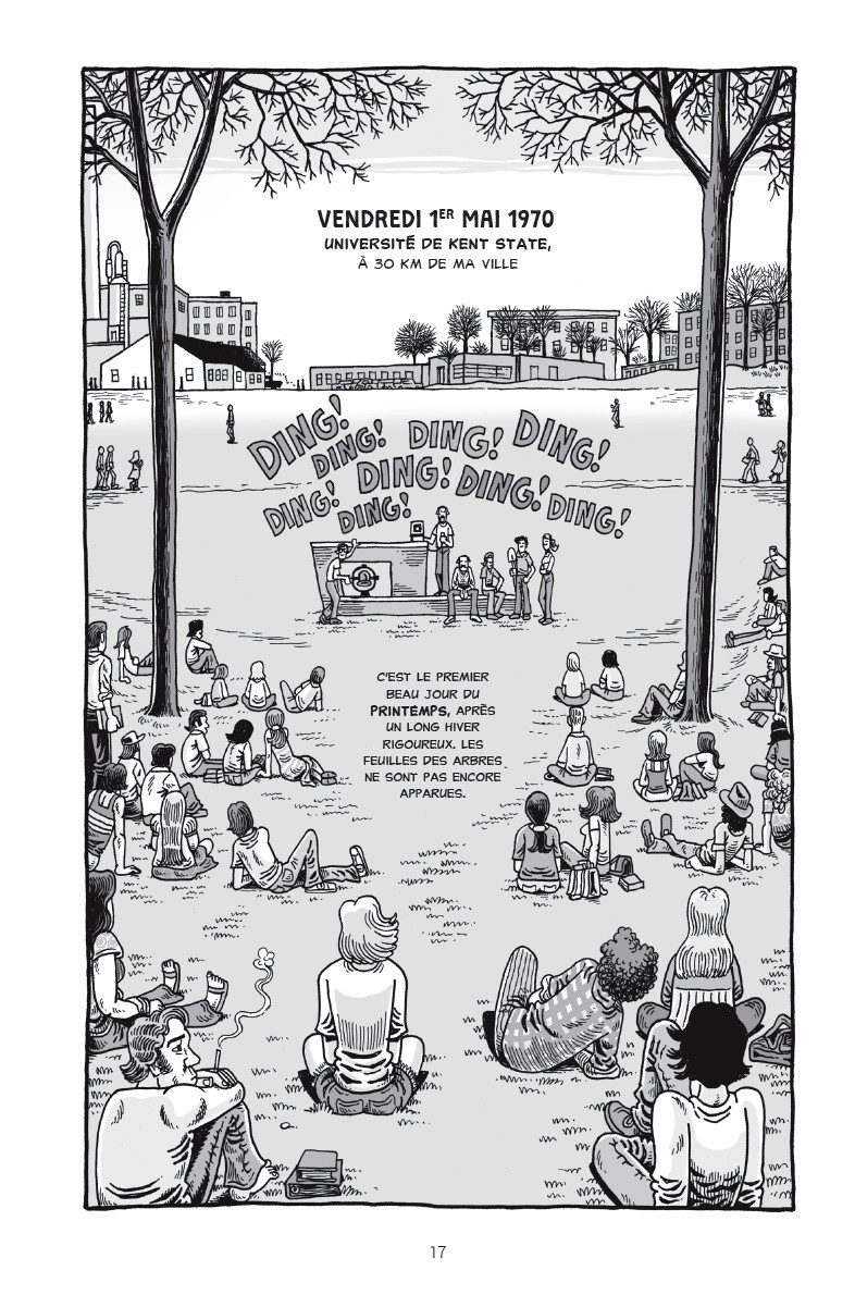 Encore un bon album de Derf Backderf! L'auteur nous decrit les tragiques evenements du campus de l'universite de Kent State durant la guerre du Vietnam. Les personnages sont attachants, l'histoire est interessante et racontee dans le souci de la chronologie et du detail, et, surtout, sans jamais juger, loin de tout manicheisme. Quelle bonne lecture!Le 12/06/2021 à 22:07:07