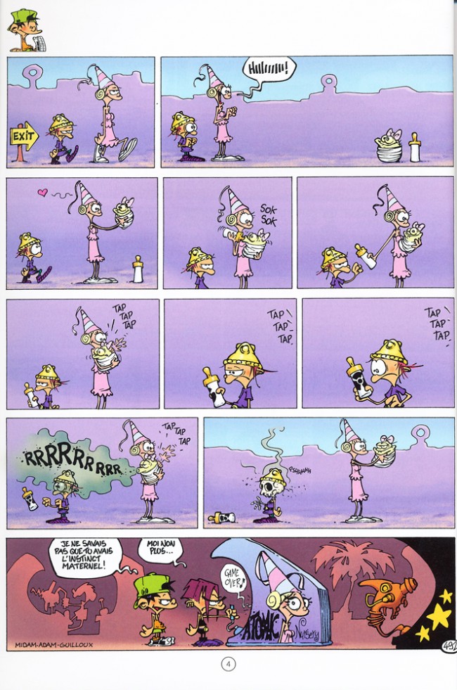 C'est album use et abuse toujours des mêmes gags à peine modifiés (le grand père et son encyclopédie, les malheurs du petit avatar, le père décalé, la sœur persécutée...bref que du réchauffé à peine tiède !). Les gags s'allongent, s'allongent... il faut maintenant plusieurs pages pour arriver à un maigre chute humoristique ! De même que penser de la publicité envahissante sur plusieurs pages en fin d'album...soupir ! La lecture de ce tome est donc très rapide !