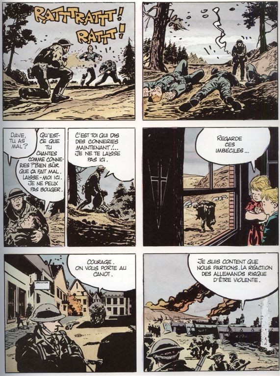 Comme Borges, Pratt voulait donner une impression de véracité à ses récits. Il explique ainsi dans ses "préfaces" le contexte des "héros" de ces histoires. On retrouve dans ces courts récits un peu de l'alacrité de l'auteur italien, son ironie aussi. A mon sens l'album souffre néanmoins de quelques défauts. Tout d'abord les dessins sont en dessous de la qualité usuelle de l'auteur. Le caractère strictement gaufré, 2 vignettes par bande, 3 bandes par page, n'agrémente guère la lecture. D'ailleurs la dernière histoire qui échappe à cette règle m'a semblé plus chatoyante. Bref ces 5 histoires de guerre (à une exception près, on parle de celle de 39-45) nous baladent dans les rangs australo-britanniques et n'ont d'intérêt que dans les rapports humains, les scènes de combat s'avérant totalement lassantes. Et c'est bien dommage car les fins sont toujours intéressantes et donnent le vrai relief aux récits. Bref, une ouvre alimentaire pour sûr mais qui laisse transparaître, trop fugacement à mon goût, le talent d'Hugo Pratt.BDGest 2014 - Tous droits réservés