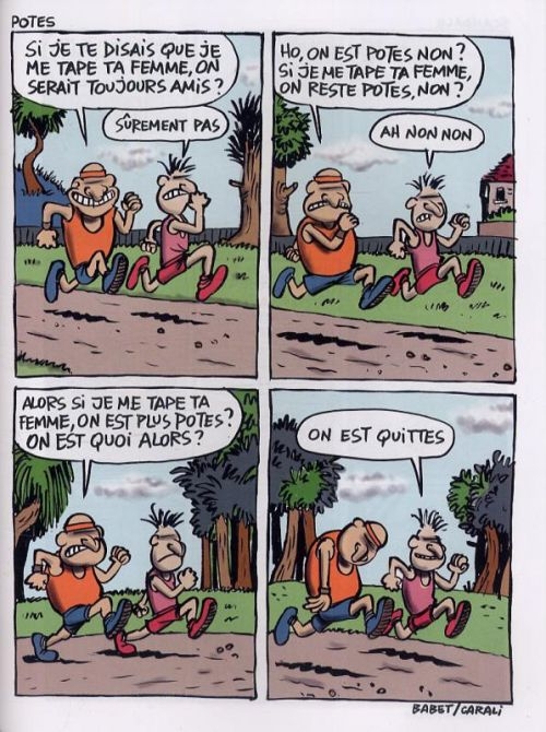 Entendues dans les bistrots, colportées par les copains, recueillies sur internet, elles sont partout et connues de tous, mais quand elles sont en BD, elles explosent littéralement en éclats de rire, comme si on les découvrait pour la première fois.