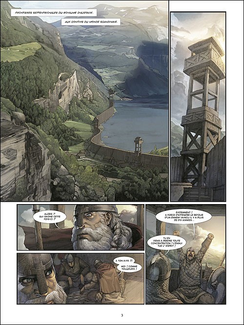 Sylvain Runberg nous invite à une nouvelle saga chez les vikings. Mais il ne s’agit pas du tout d’une fresque historique. Nous avons là de la Fantasy qui démarre plutôt de manière classique. Le royaume d’Alstavik est menacé de partout : une guerre interne entre le roi est son frère fait rage, les celtes menacent l’ouest du pays et les Centaures, ennemis autrefois vaincus mais non exterminés, reviennent plus terribles que jamais. Nous ne verrons pas beaucoup ces derniers, mais le peu suffit pour comprendre qu’il ne fait pas bon croiser leur chemin.