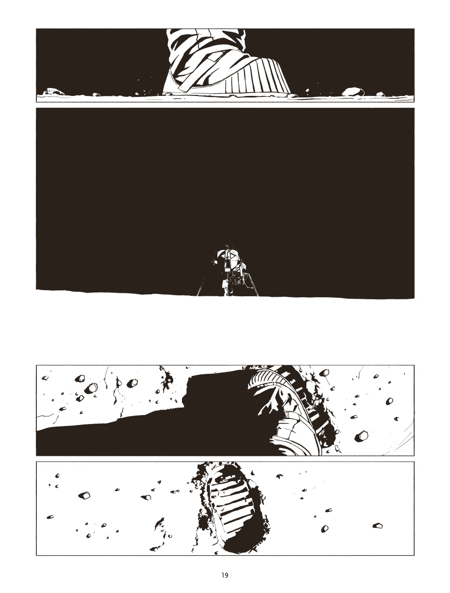 Les planches possèdent cette qualité hypnotique, similaire à celle que Stanley Kubrick avait créée pour 2001, l'Odyssée de l'espace. L'étrange ballet des véhicules spatiaux, suspendus dans le vide fascine dans sa lenteur et sa légèreté. Le parti-pris d'un noir et blanc très tranché permet aussi de tirer parti de la belle profondeur des noirs, tout en laissant au dessinateur la possibilité de proposer des scènes très fortes. La narration, très froide et factuelle, fonctionne parfaitement avec le ton général, jouant subtilement de l'ambiguïté sur la véracité des faits relatés. Les interventions d'officiels des deux camps pourraient même induire que ceci n'est peut-être pas une fiction. Ce ne serait pas la première que des doutes seraient émis sur ce qui s'est réellement déroulé là-haut, parfois avec humour, mais aussi avec beaucoup de sérieux. En période propice aux fake news, Perna et Bedouel ne lancent pourtant pas une nouvelle théorie complotiste. Ils rappellent à quel point il est facile de suggérer des "faits alternatifs", qui trouveront écho chez certains.