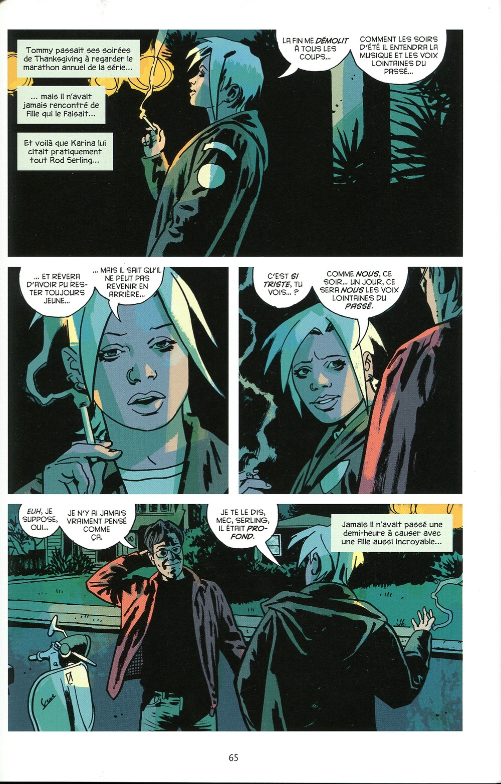 Je viens de finir, là où gisait le corps d'Ed Brubaker et Sean Philips. En achetant cet Comics, je pensais que je découvrirais une histoire de meurtre, et que cela ressemblerait à un thriller version Cluedo. Eh bien pas du tout, le corps n'est pas le centre de l'histoire. Ce scénario est encore mieux. Au démarrage de cet album, on nous représente un petit plan de la ville, pour bien nous imprégner de la localisation de chaque habitant. Nous remarquons que tout le monde peut observer qui que ce soit. Nous disposons également d'une galerie de personnages du récit, afin de faciliter la compréhension de cette histoire en prenant en compte les points de vue de chacun des ces protagonistes. Le scénario est construit de telle sorte, que nous en apprenons de plus en plus sur la vie de chacun, grâce à un découpage de l'histoire très bien élaborée, qui est une sorte de puzzle. Cette enquête addictive tire son intérêt de l'association des petits récits de chacun, nous menant petit à petit là où gisait le corps. Du point de vue du graphisme et de la couleur, il n'y a rien à reprocher, c'est vraiment à la hauteur d'un bon comics. La couleur est en adéquation avec la situation, qu'il s'agisse de violence, de la petite super-héros, ou des scènes de sexe... La couleur sélectionnée renforce la situation. Je ne connaissais pas Ed Brubaker, mais c'était une découverte très intéressante avec cette intrigue très bien construite. J'ai vraiment hâte de me procurer d'autres œuvres.Le 17/06/2024 à 10:25:11