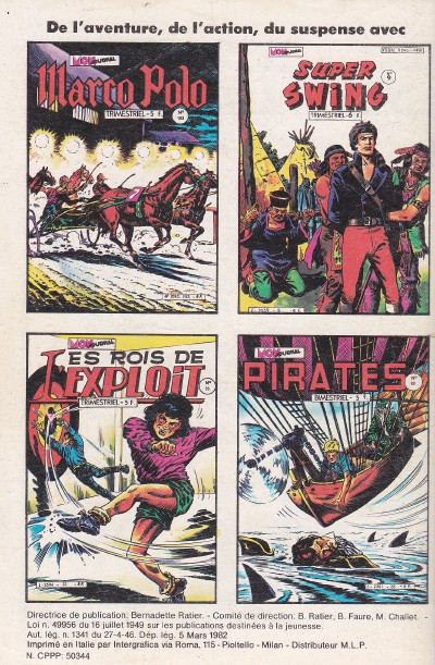 Info édition : Lancelot : "Le preux et le barbare" par Jean Ollivier (sc) et Santo D'Amico (des) (45 pl) - Johnny Flipper : La ballade du wigwam flottant (20 pl) - Barnabé : Indemnité de licenciement par Juan Rafart (des) (4 pl) - Bingo : Le fou dangereux (45 pl).