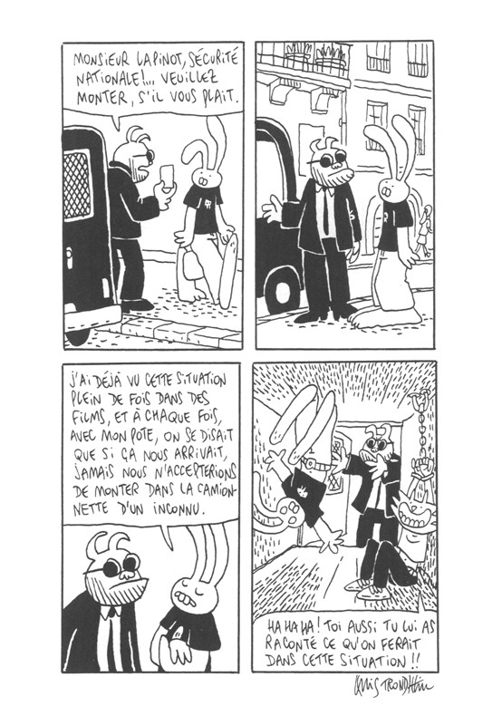 Quoi qu'il en soit, j'ai beaucoup aimé, encore plus que 'Sous le trottoir'! Ces histoires d'agents secrets qui prennent en filature Lapinot et Richard sont très drôles!