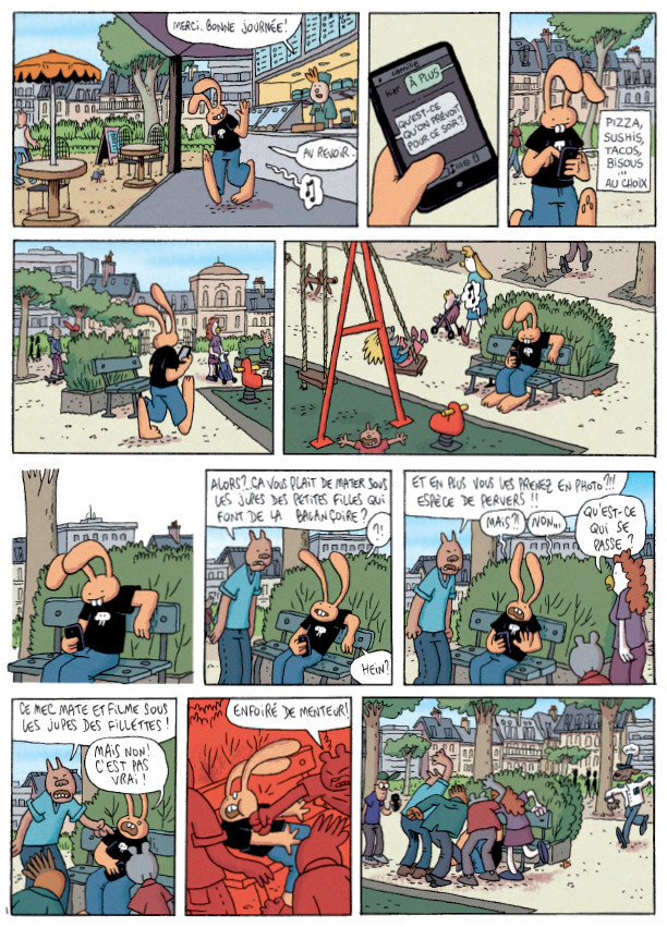 Résumé: Lapinot, le bras plâtré est face à un nouveau dilemme : doit-il ou non porter plainte contre les parents qui l’ont injustement tabassé dans un jardin public, après l’avoir pris pour un pédophile ?