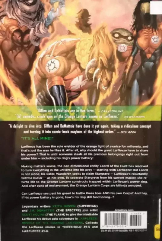 Info édition : Volume 1 - 1st printing. "Revolt of the Orange Lanterns!" Collects Larfleeze (2013 DC) #1-5 and material from Threshold (2012 DC) #1-6.