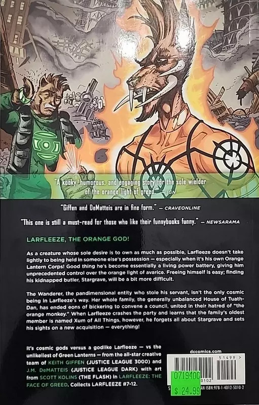 Written by the legendary creative team of Keith Giffen and J.M. DeMatteis, LARFLEEZE VOL. 2 conclude their run on the renegade Orange Lantern of Avarice.