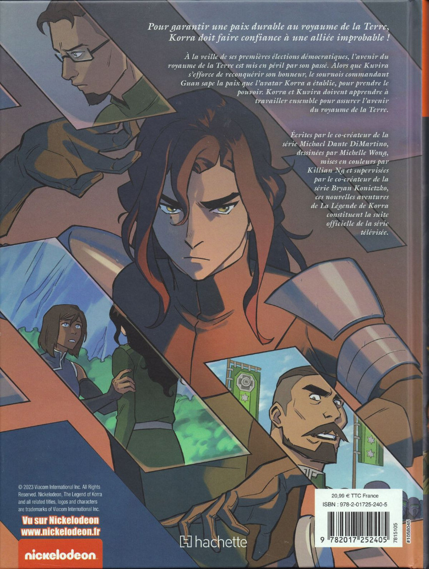 Résumé: Pour assurer une paix durable au Royaume de la Terre, Korra doit faire confiance à un allié improbable !À la veille de ses premières élections, l'avenir du Royaume de la Terre est menacé par son passé. Alors que Kuvira s'efforce de reconquérir son honneur, le sournois commandant Guan sape la paix que l'Avatar Korra a instaurée pour s'emparer du pouvoir. Korra et Kuvira doivent apprendre à travailler ensemble pour assurer l'avenir du Royaume de la Terre.Profitez de la suite des aventures d'Avatar, maintenant avec une nouvelle section de carnet de croquis et des commentaires d'artistes ! Écrit par le co-créateur de la série Michael Dante DiMartino et dessiné par Michelle Wong , avec une consultation de Bryan Konietzko, c'est la suite officielle de la série télévisée !