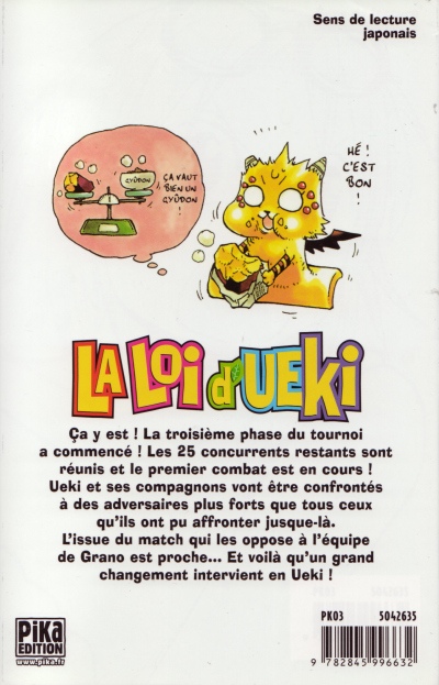 Résumé: Ueki finit par vaincre Grano. Mais alors que nos héros reprennent des forces à l'infirmerie, Marylin et son équipe expédient l'équipe de Kapousho en moins de cinq minutes. Inquiet à l'idée d'affronter bientôt cette incroyable équipe, Ueki part faire le vide, et rencontre Lee Hô qui lui reproche ses piètres compétences au combat et sa trop grande confiance dans ses objets célestes. Le lendemain, le match opposant l'équipe d'Ueki à celle de Marylin commence enfin...